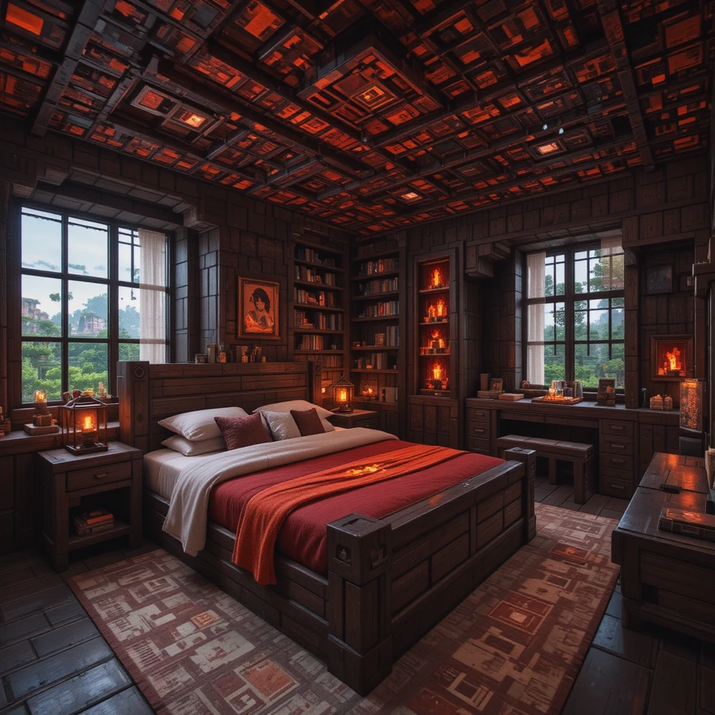 For daring players, build a Nether-inspired bedroom using nether bricks, magma blocks, and soul lanterns. Use blackstone and crimson wood to achieve that fiery, bold aesthetic. Just make sure to light it safely!