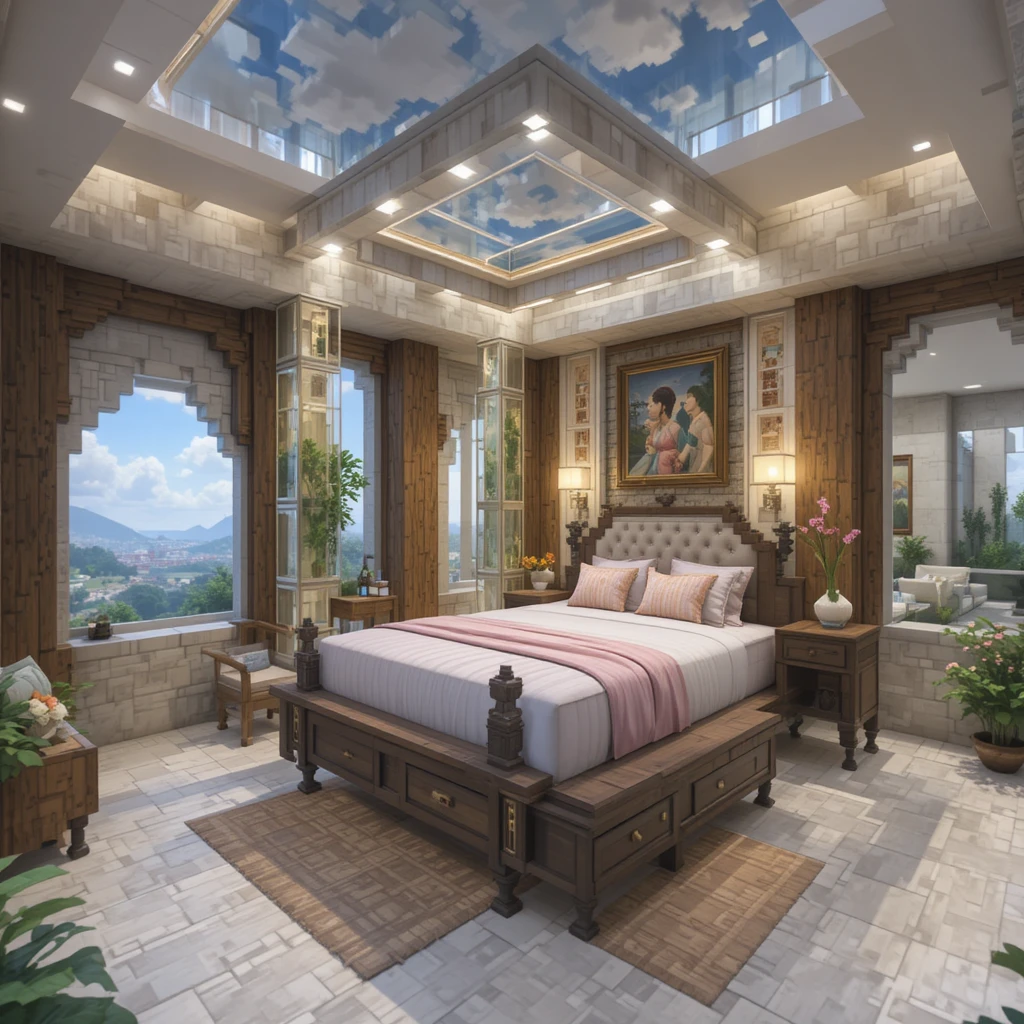 Build your bedroom in the clouds with glass platforms and light blocks. The floating design is both magical and safe from mobs. Add trapdoors and ladders for access, and use pastel-colored beds for a dreamy touch.