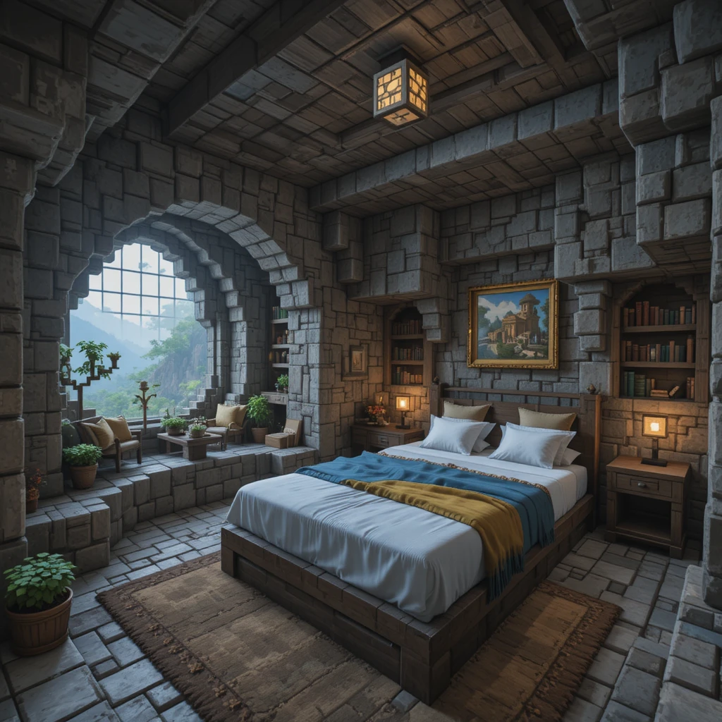 Build a royal sleeping chamber using stone bricks, banners, and chandeliers. Add red carpets and armor stands for decoration. This majestic theme works best in large castle builds and adds a touch of fantasy to your world.