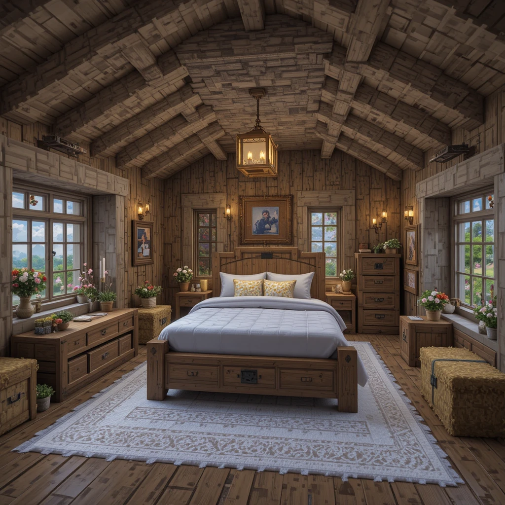 For a countryside feel, use birch planks, hay bales, and trapdoors for decoration. Add flower pots, fences, and lanterns to create that peaceful farmhouse bedroom vibe. This cozy theme works beautifully for survival villages.