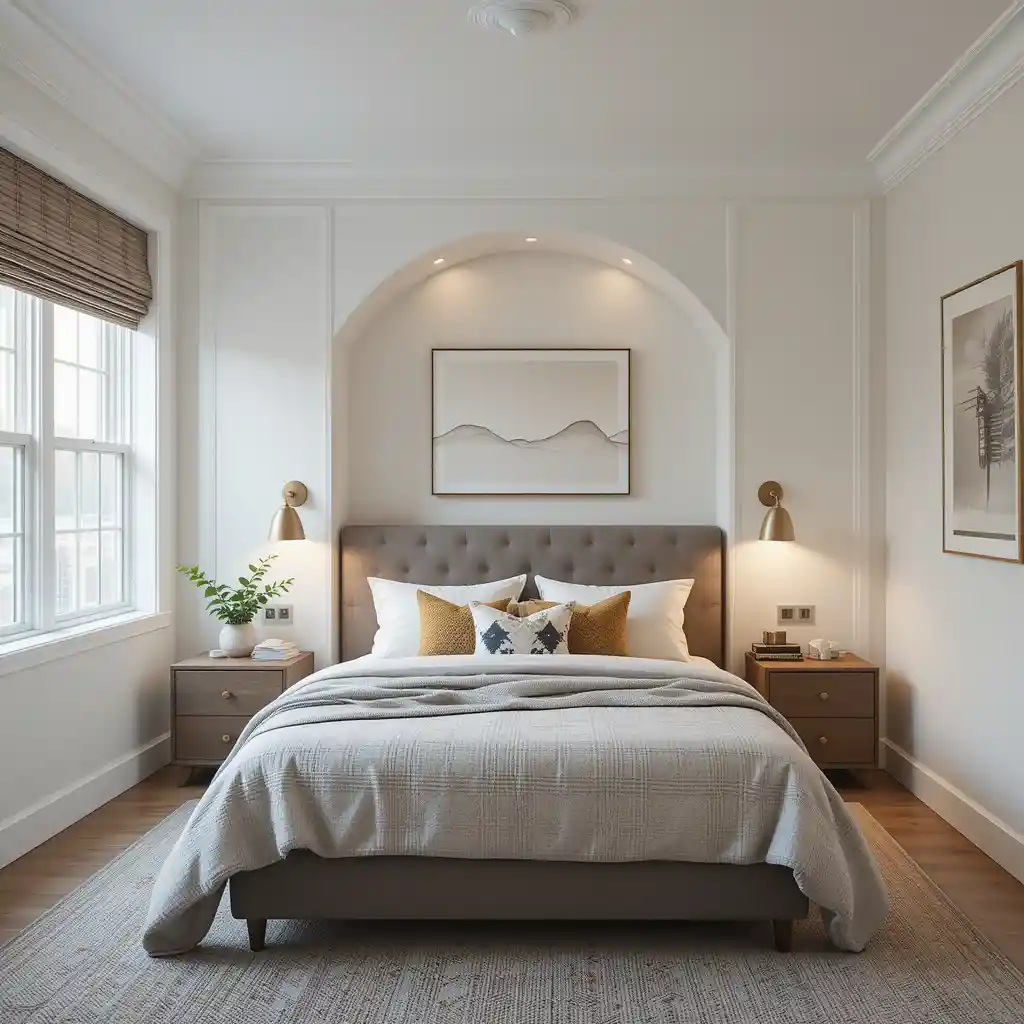 Mount sconces on either side of the bed and add floating nightstands for a headboard wall nook. It creates a minimalist yet functional sleeping area.