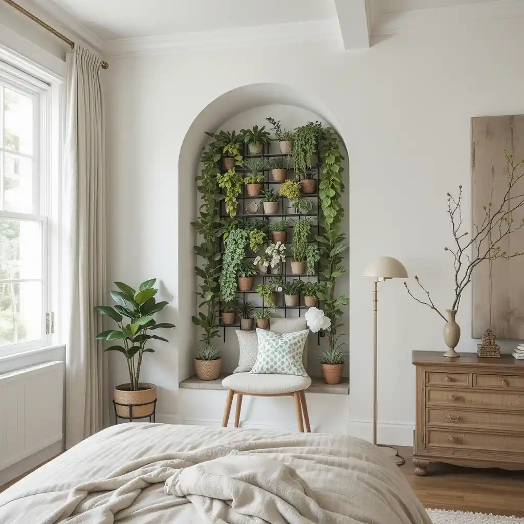 Dedicate a wall for a vertical plant display. Add a chair below and it becomes a calming green corner perfect for morning coffee or journaling.