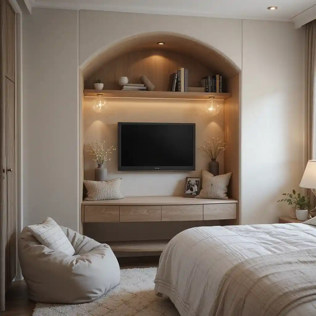 Mount a flat-screen in an alcove and add floating media storage to create a TV nook. Add warm lighting and beanbags or a lounge chair for cozy binge-watching. Bedroom Nook Ideas