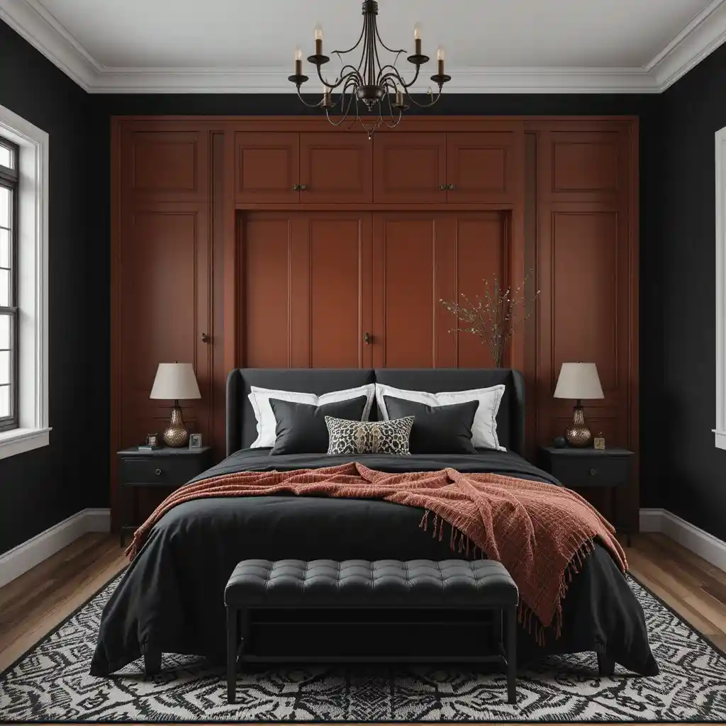 Mix black steel frames with distressed wood, rust linens with modern lighting, or sleek furniture with natural textures for a balanced and lived-in feel. Black and Rust Bedroom Ideas