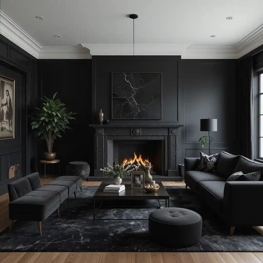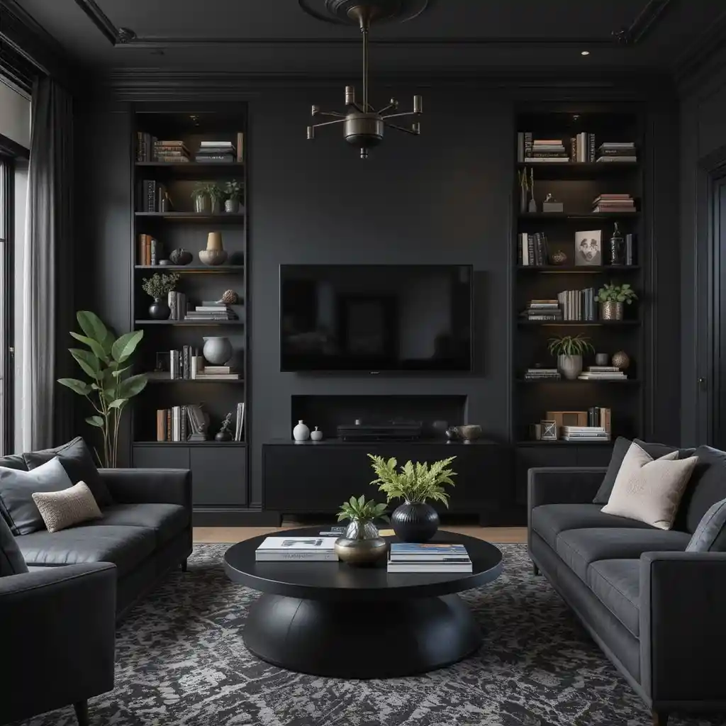 Matte black walls instantly create a sophisticated backdrop. They absorb light beautifully, giving your space depth and character without feeling too harsh.