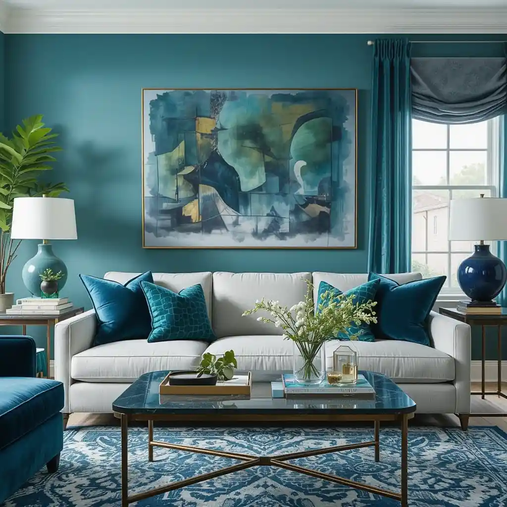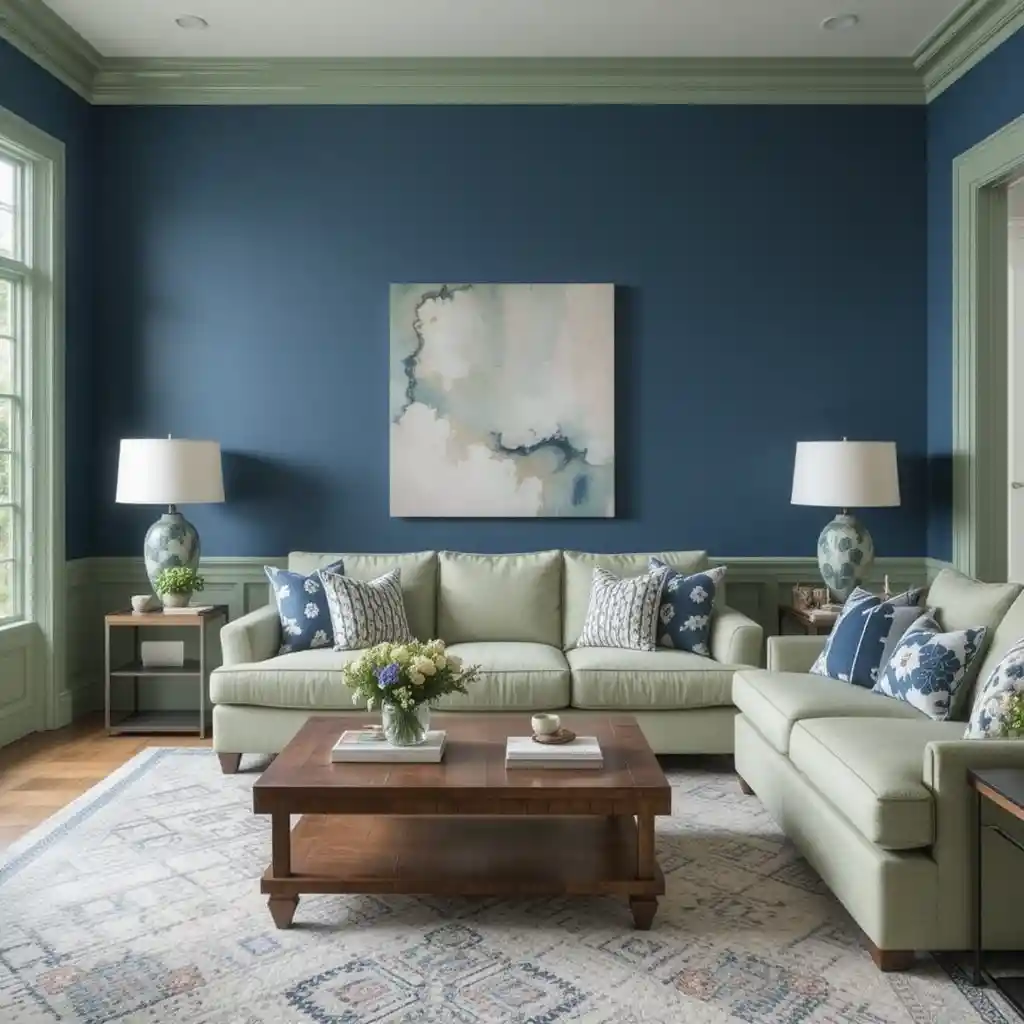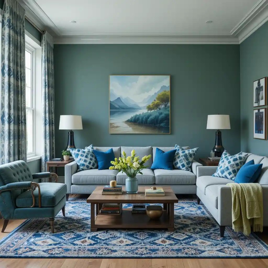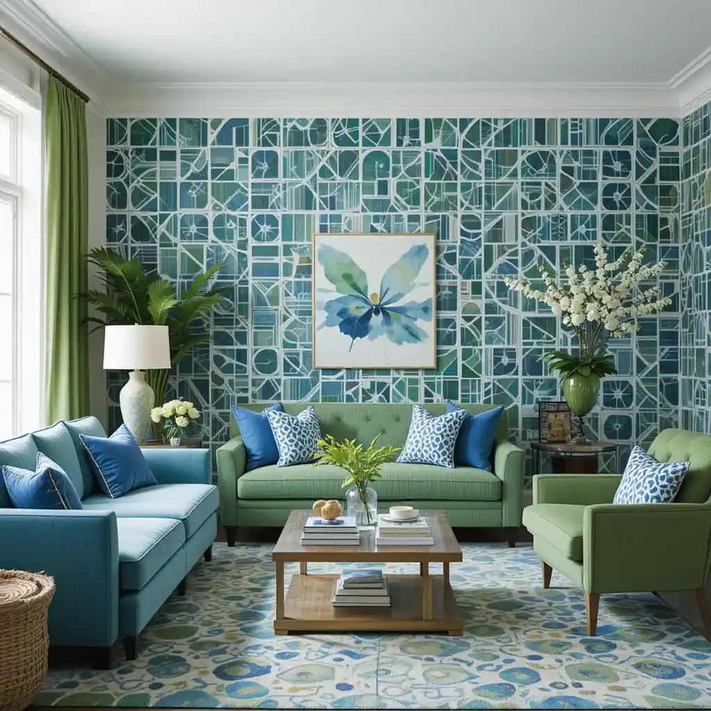 Combining blue and green in your living room creates a refreshing and stylish atmosphere that feels both serene and bold.