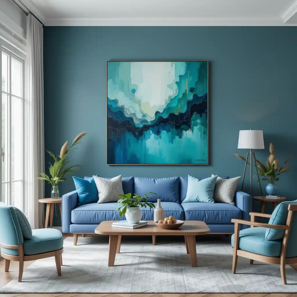 19. Green Accent Furniture with Blue Wall Art