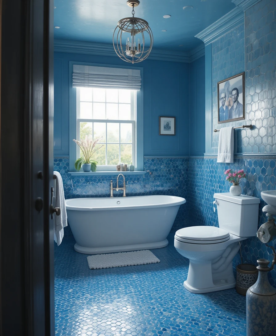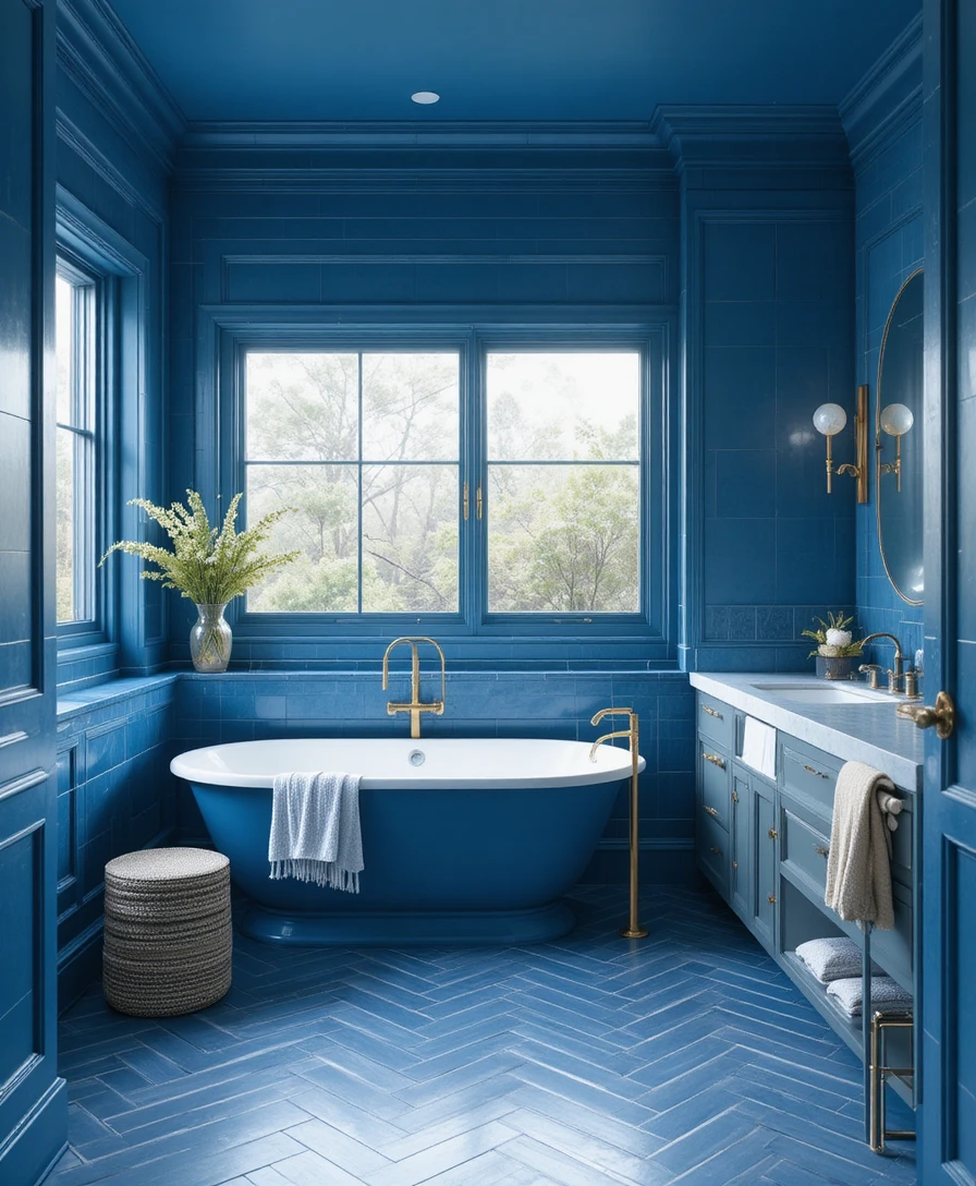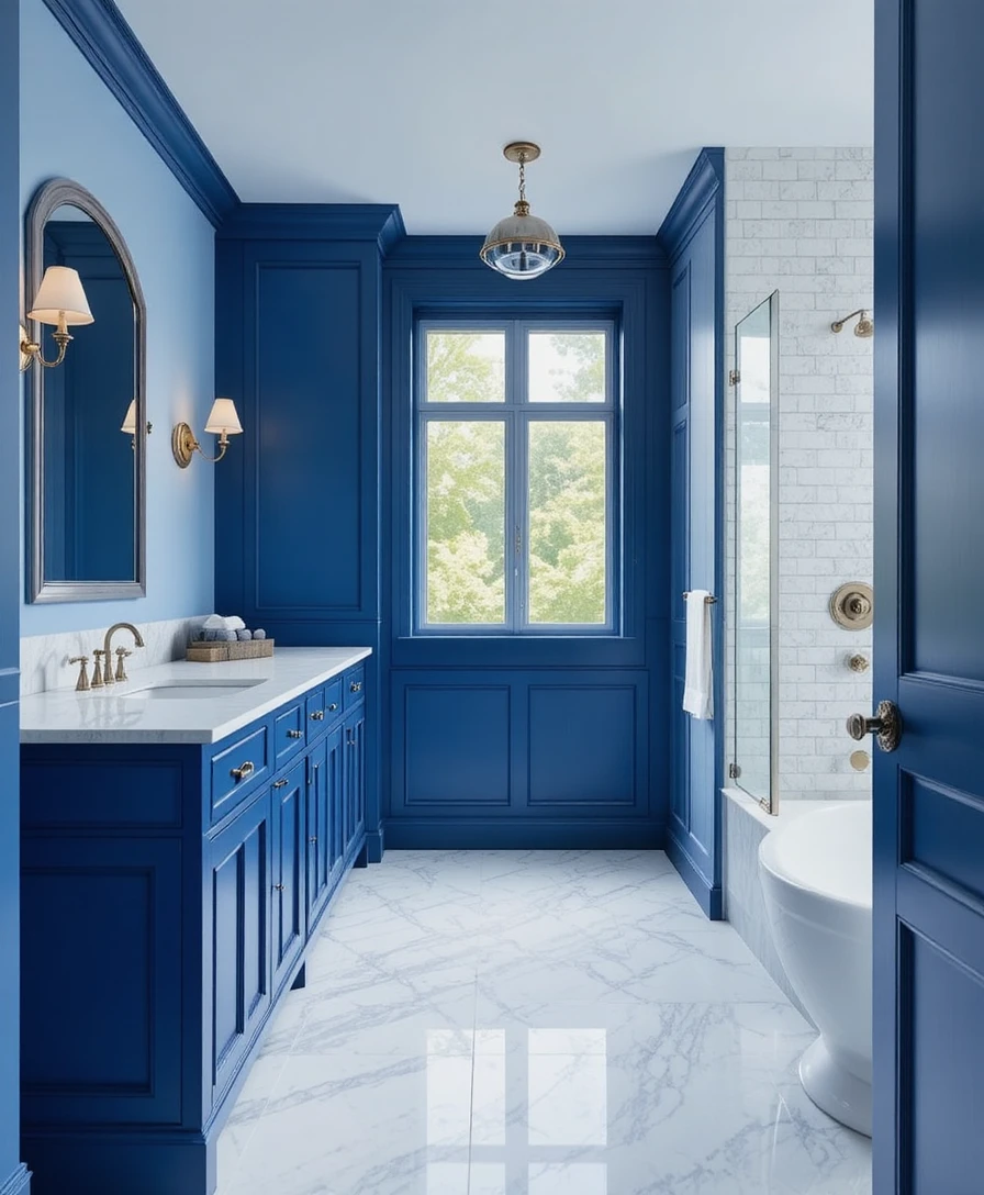 Add Metallic Accents: Gold, silver, or chrome fixtures elevate blue tones instantly.