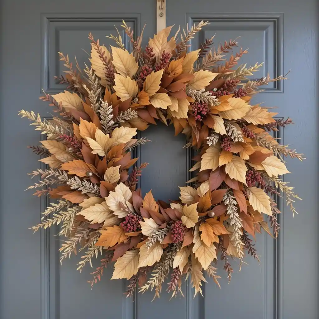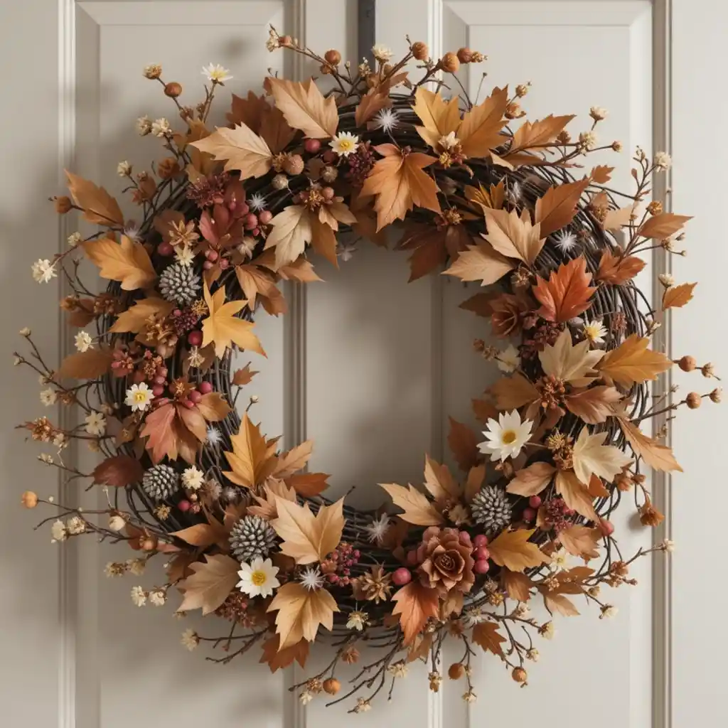 Mix soft feathers in warm autumn colors with rustic twigs for a unique, nature-inspired wreath that stands out on your front door.