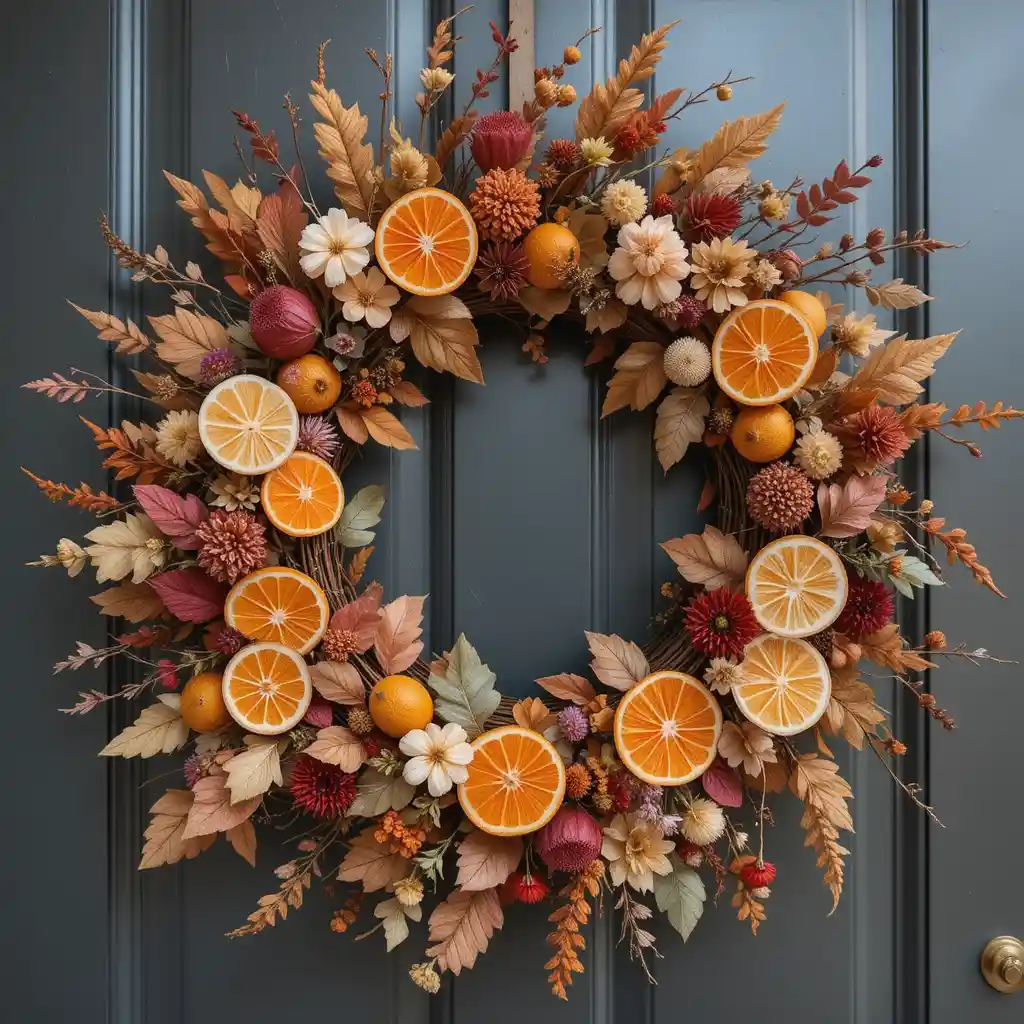 Add a citrus twist by incorporating dried orange slices among fall florals for a fresh, vibrant, and fragrant touch.
