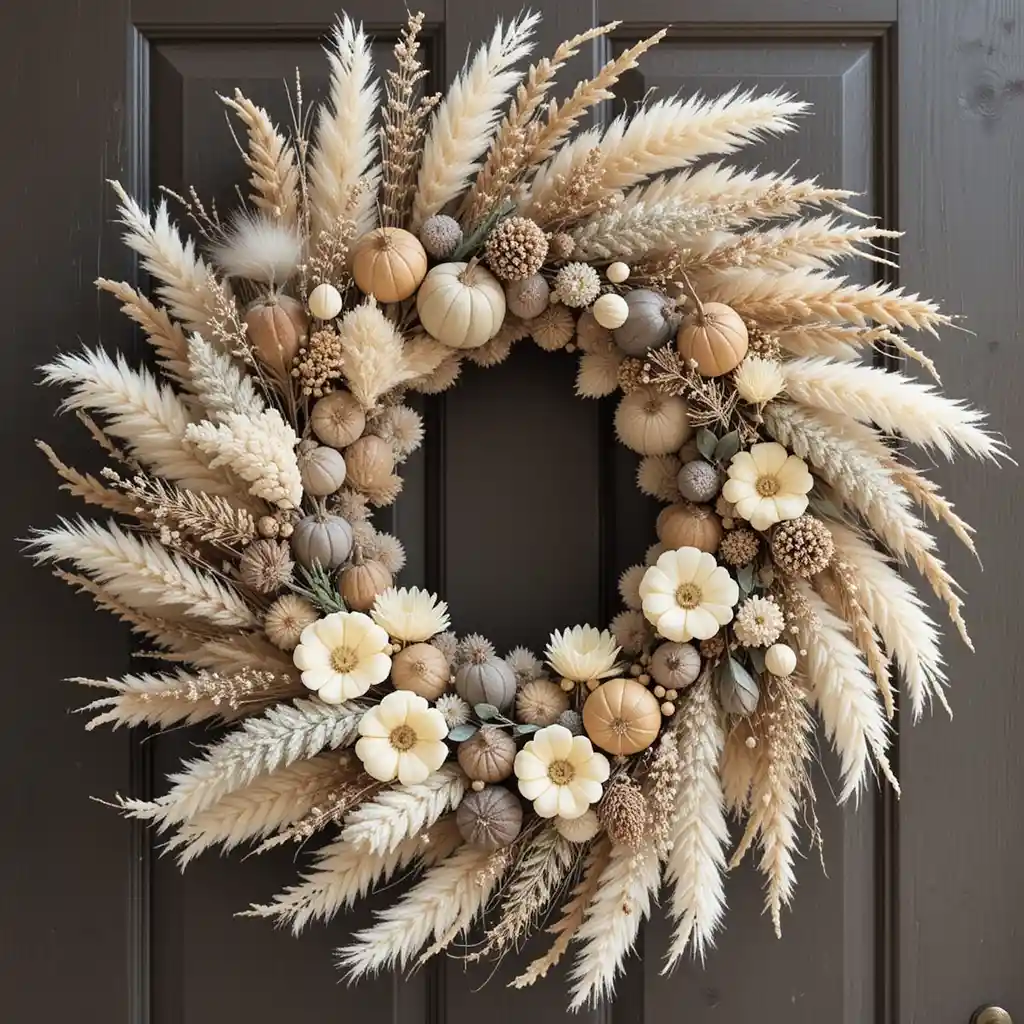 14. Neutral-Toned Wreath with Pampas Accents