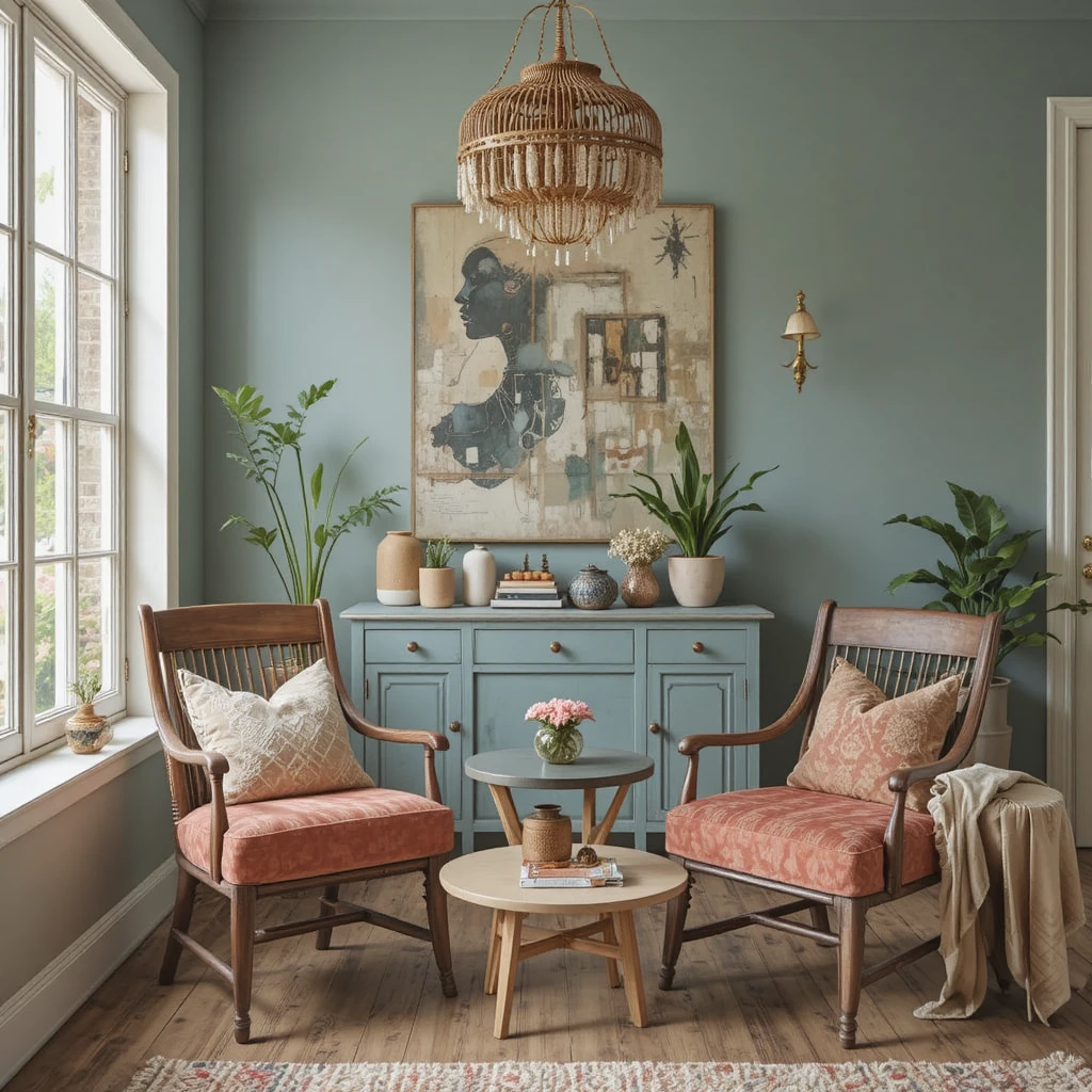 - Play with furniture and decor from different cultures for an eclectic feel.