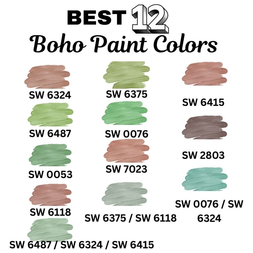 If you want ready-made shades, check out these Sherwin–Williams colors popular among Boho enthusiasts: