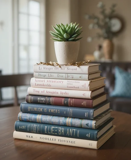 Choose books that match your room’s color palette. Mix different heights for visual balance. Add layers using trays, candles, greenery, or decorative objects. Keep the arrangement simple to avoid clutter.