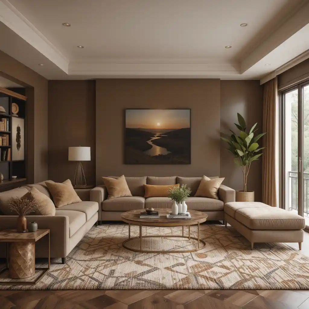 Use multiple tones of brown like mocha, caramel, and chocolate to create a layered, visually rich atmosphere. This works especially well on walls, rugs, and textiles to add warmth and harmony.
