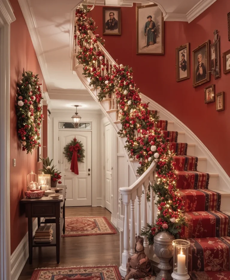 12 Red and White Christmas Hallway Ideas to Add Instant Holiday Charm