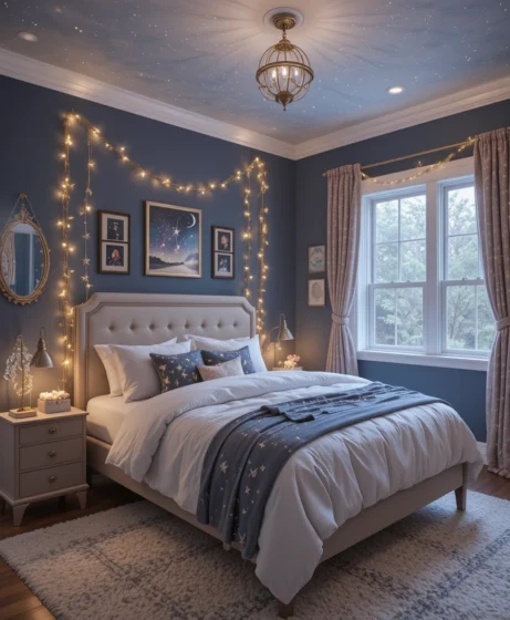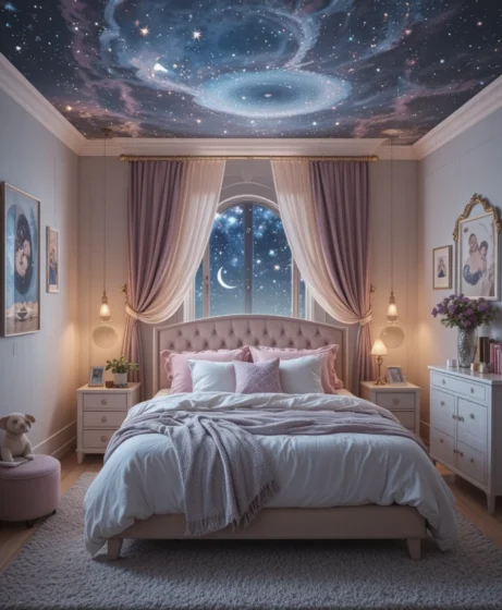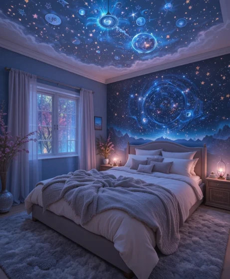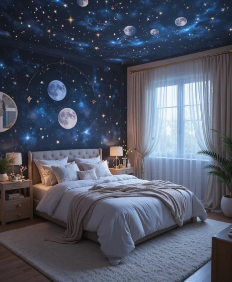 A celestial bedroom is soothing, magical, and full of personality. By blending stars, moons, soft lighting, deep colors, and unique décor, you can transform your room into a dreamy escape.