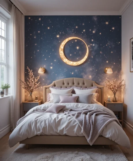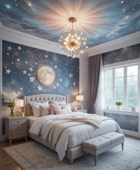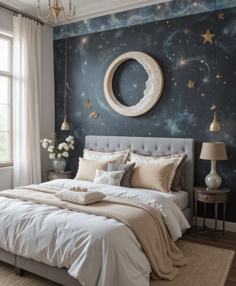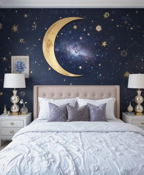 These 37 celestial bedroom ideas help you create a relaxing space that feels calm, cozy, and beautifully styled. Whether you go minimal or bold, your bedroom will shine with cosmic charm.
