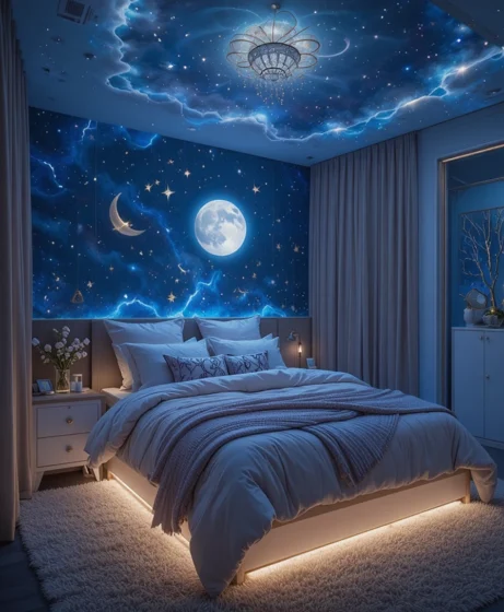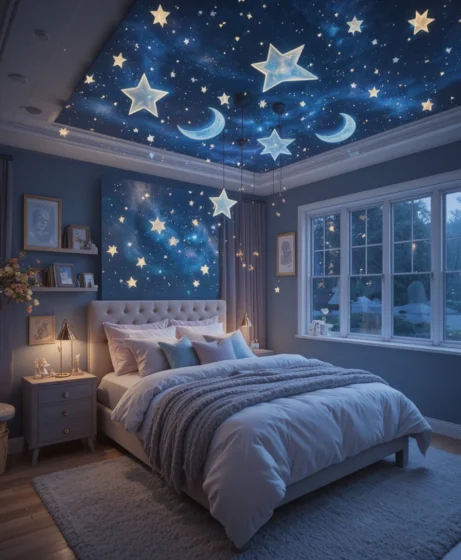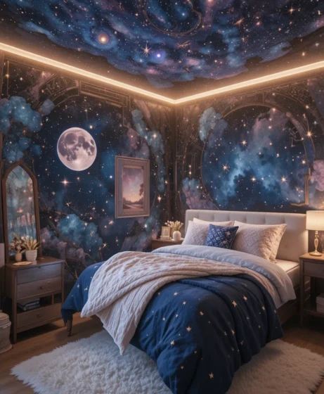 Designing a magical bedroom inspired by the cosmos is a beautiful way to spark creativity, comfort, and imagination.