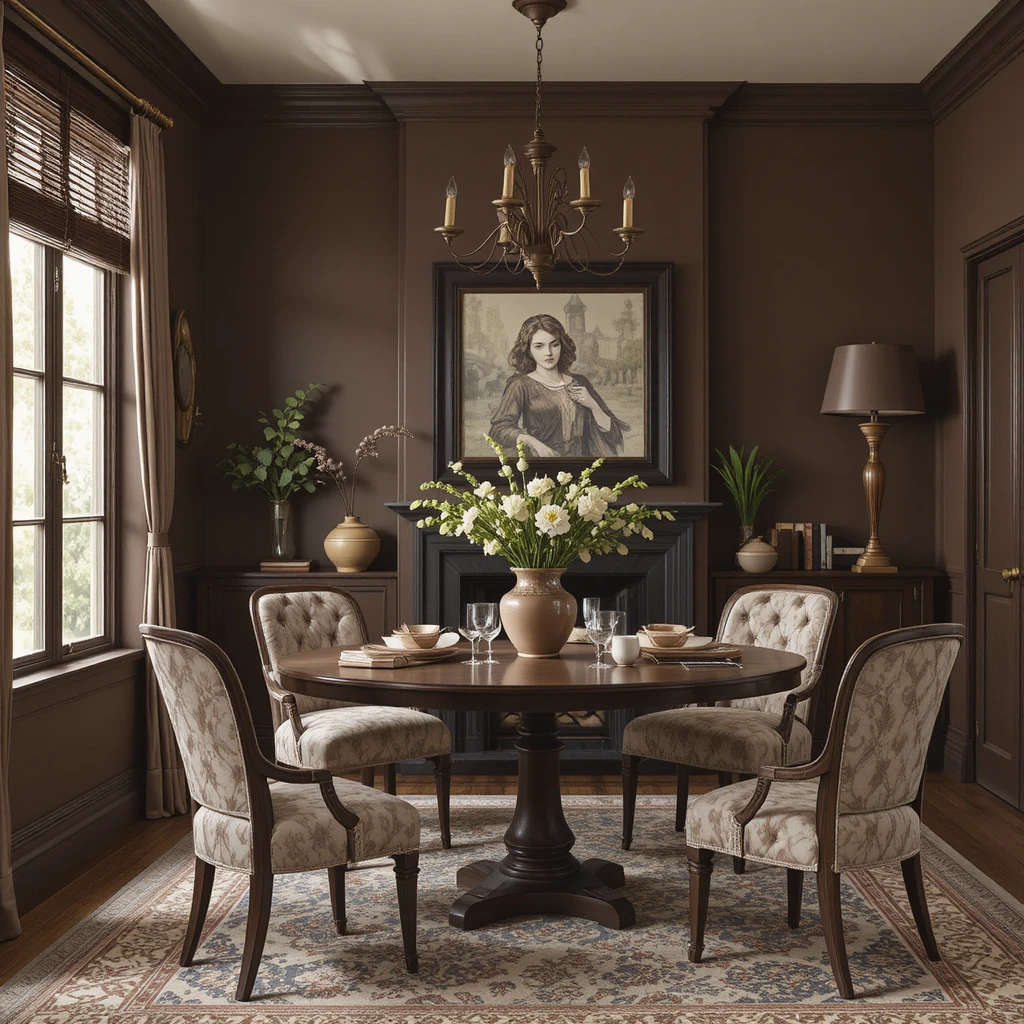 Deep, cozy brown perfect for dining areas. Pairs beautifully with cream, beige, or gold accents. Chocolate Brown Paint Colors