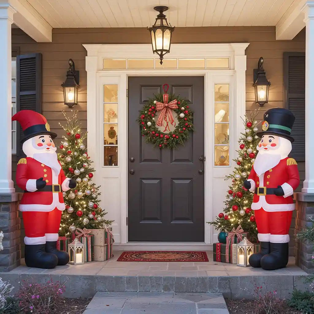 Add fun with inflatable Santas, snowmen, or nutcrackers that delight kids and neighbors alike.