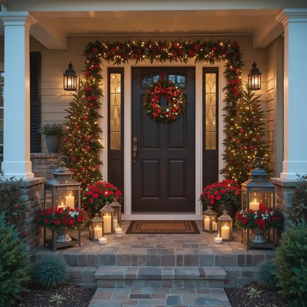 Place large lanterns filled with candles or ornaments at your entryway for a cozy and welcoming glow. Christmas Front Porch