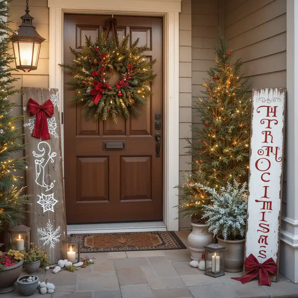 Line your walkway with illuminated candy canes or lanterns to guide guests to your holiday entry.