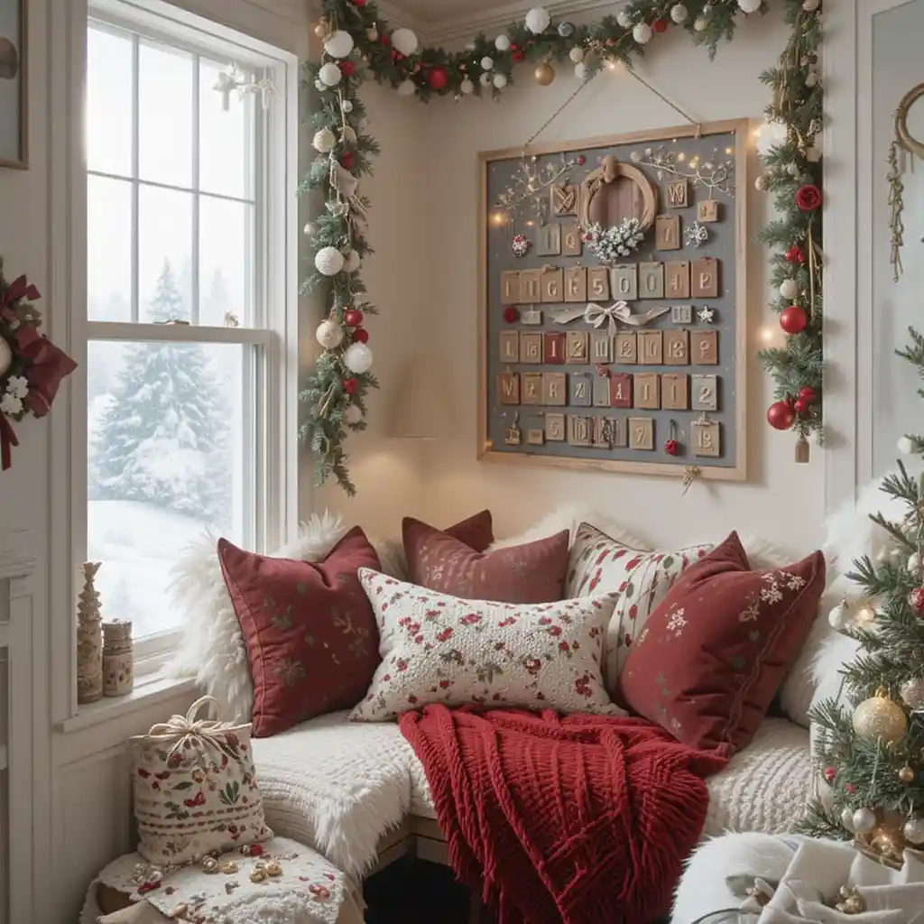Use your nook to showcase an advent calendar or countdown board. It builds excitement for Christmas each day.