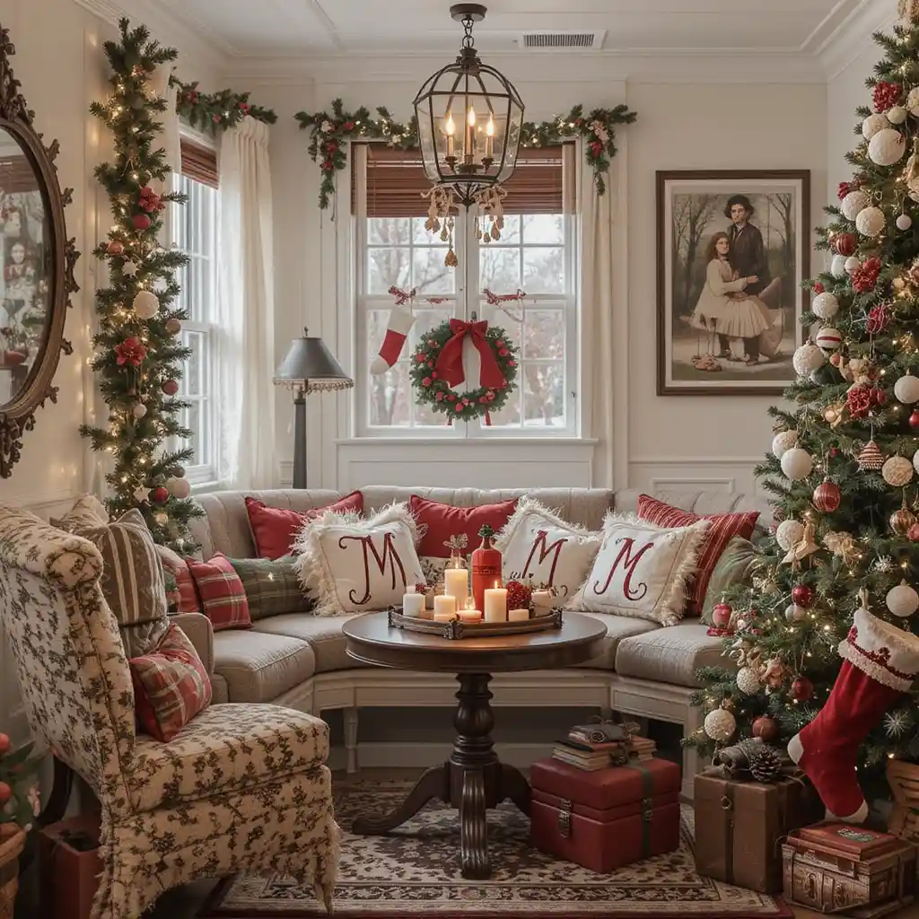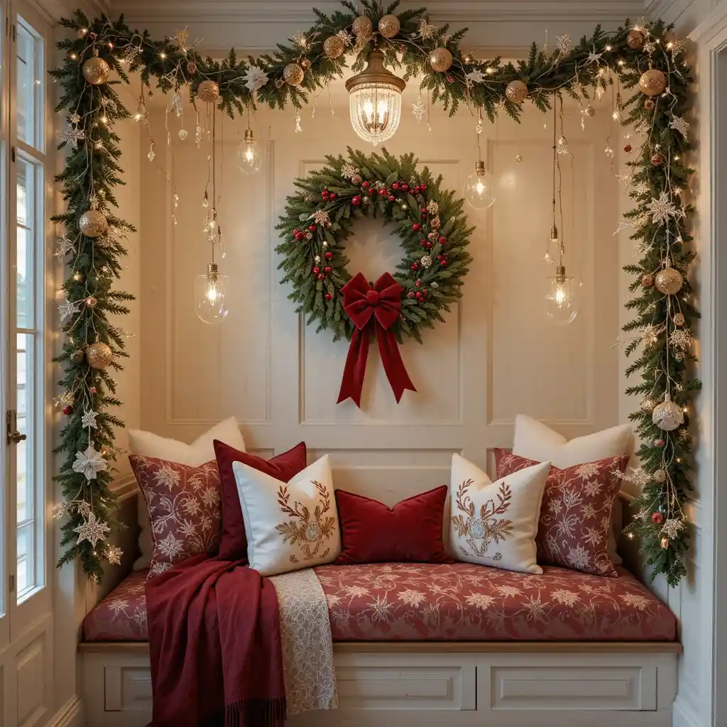 Add monogrammed pillows, family stockings, or framed holiday photos. This makes the nook more personal and heartwarming. Christmas Nook Decor