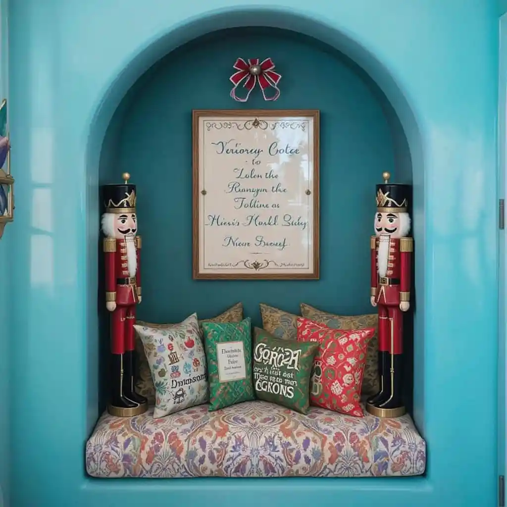 Place nutcracker figures on either side of your nook. They bring tradition and bold color to the space. Christmas Nook Decor