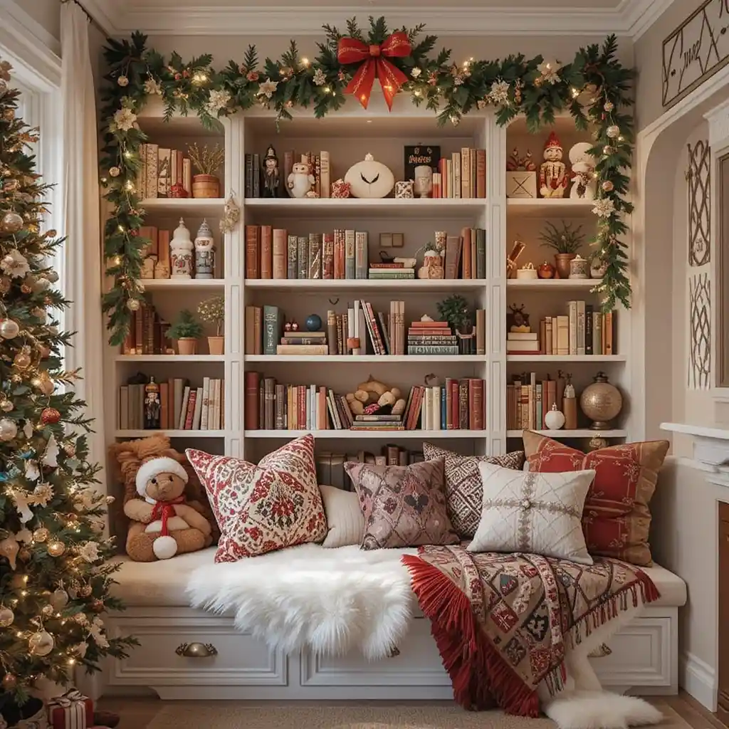 Christmas nook decor is the perfect spot to enjoy warm cocoa, read holiday books, or simply relax while soaking in the festive atmosphere.