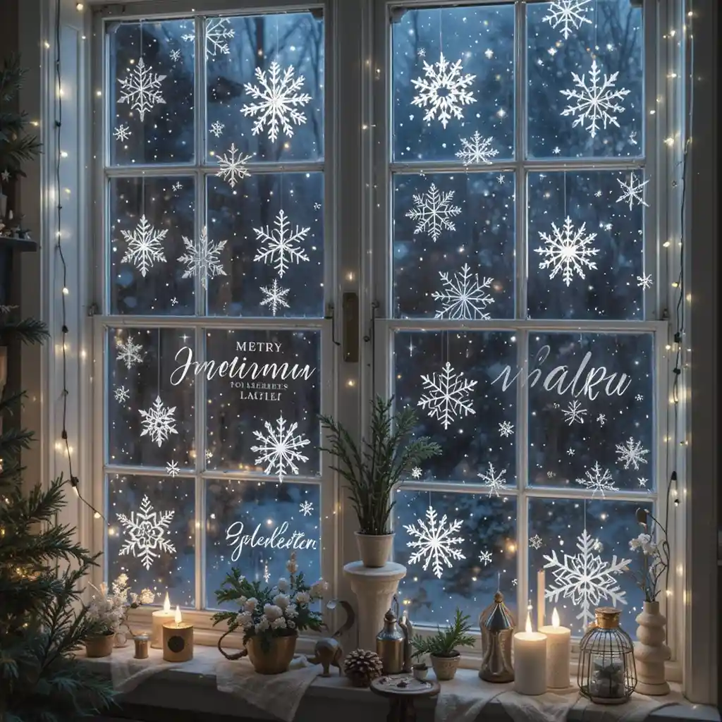Add snowflake stickers or decals to your windows. They create a magical frosty look without the winter chill.