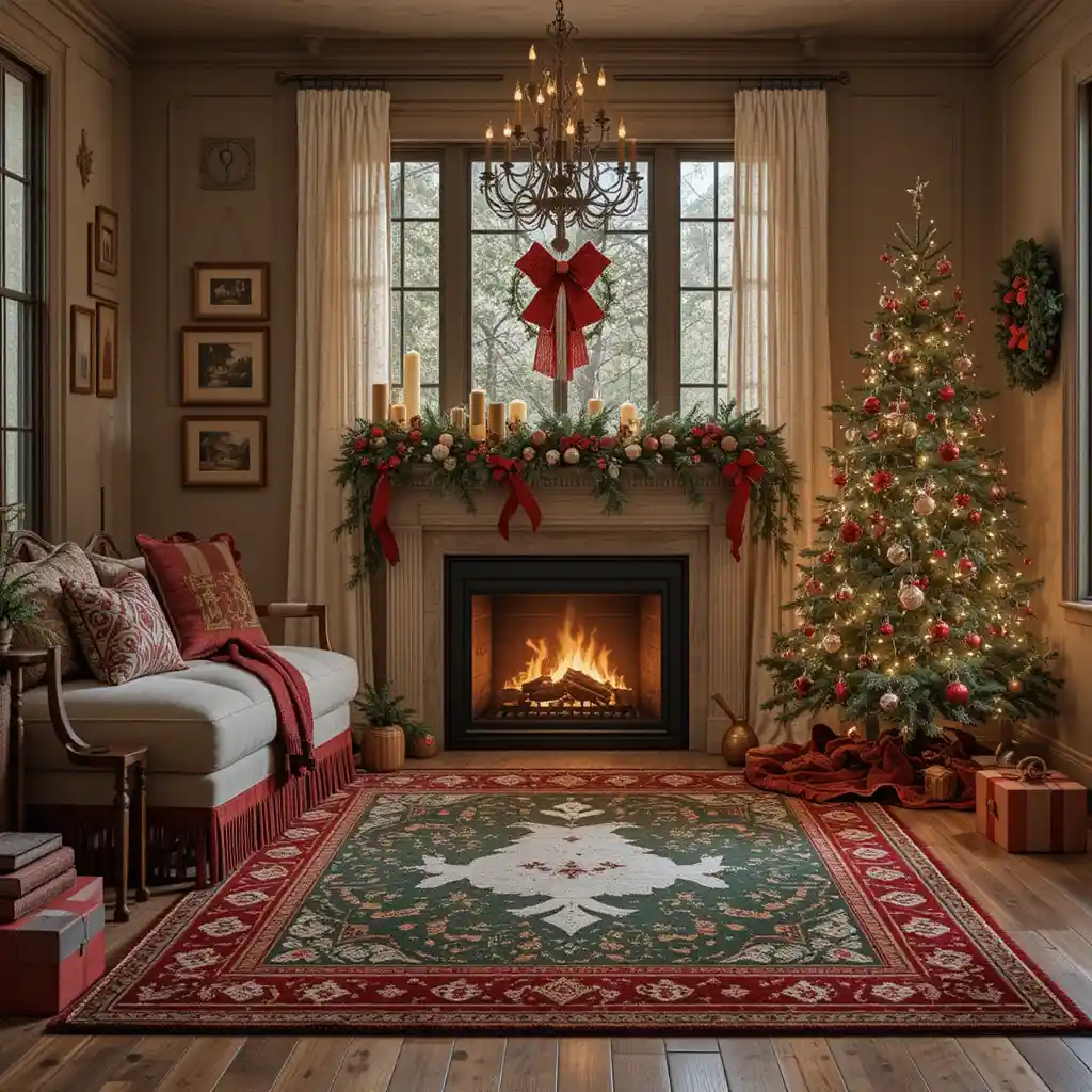 A festive rug in classic Christmas colors adds a pop of holiday spirit to the floor and ties your room together.