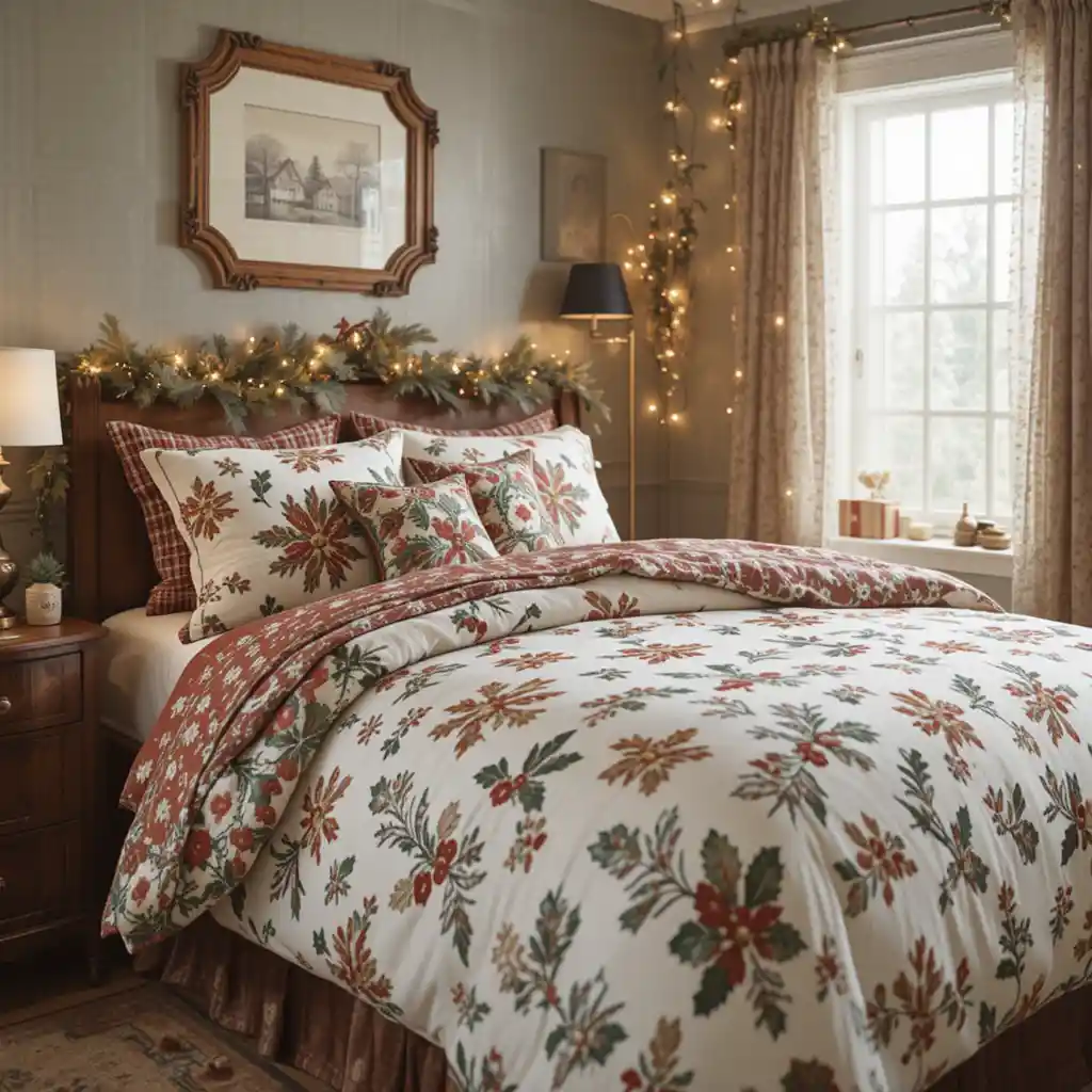Switch your regular bedding to Christmas-inspired sheets and duvet covers with patterns like snowflakes or holly berries.