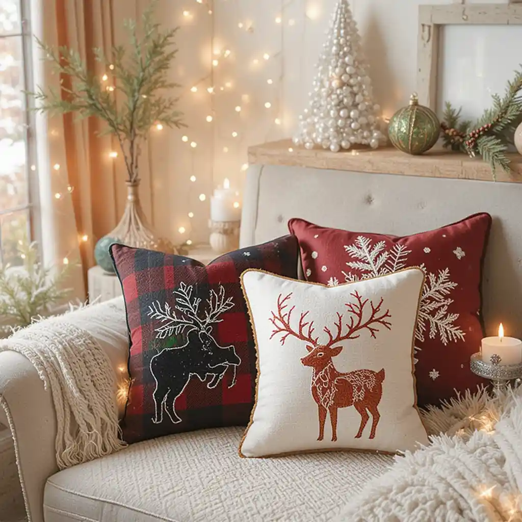 Swap out everyday cushions with Christmas-themed throw pillows featuring reindeer, snowflakes, or plaid patterns. They instantly add seasonal charm.