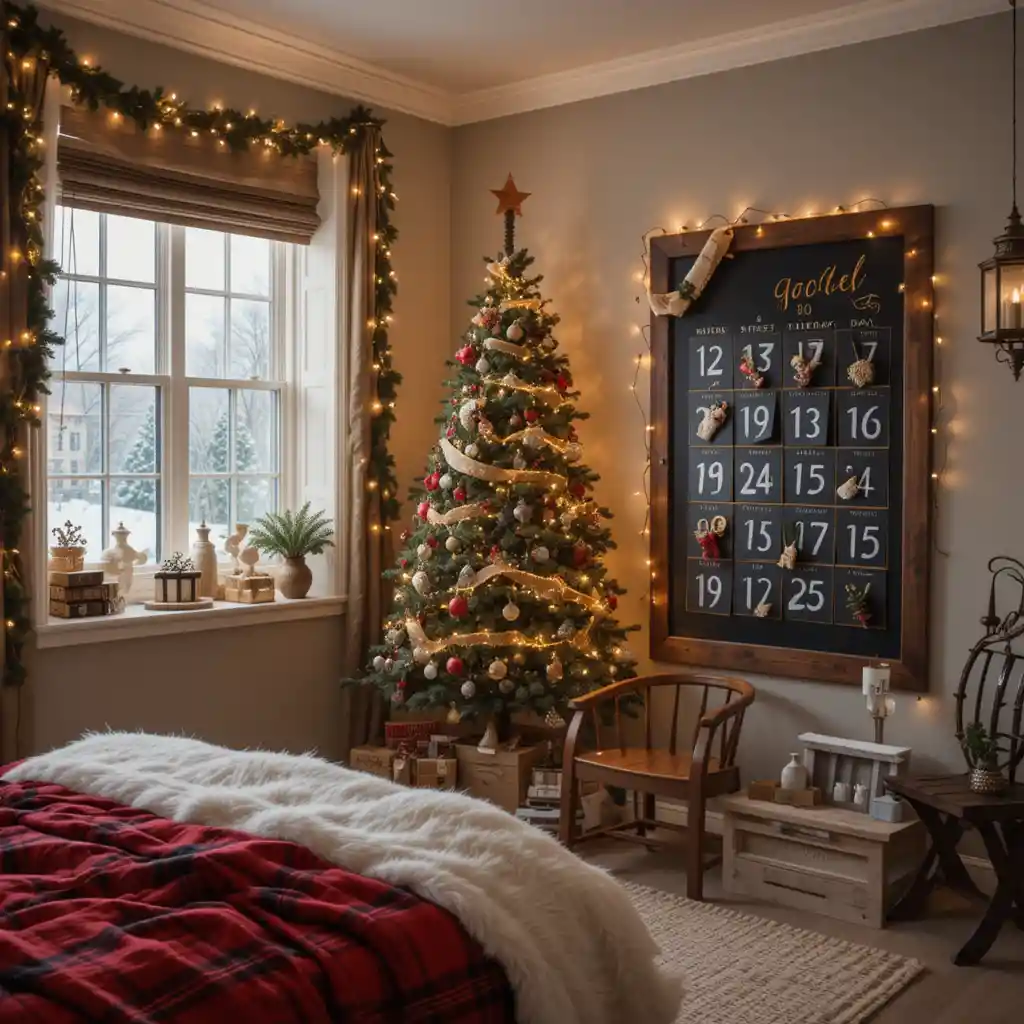 Set up a chalkboard or wooden countdown calendar in your room to build excitement as Christmas Day approaches.
