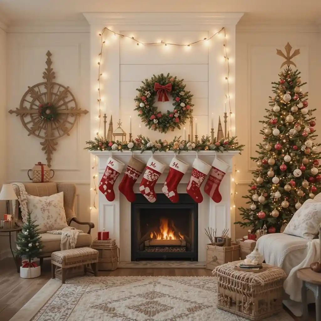 Hang decorative stockings on walls, chairs, or even bedposts for a whimsical holiday touch outside the fireplace. Christmas Room Decor