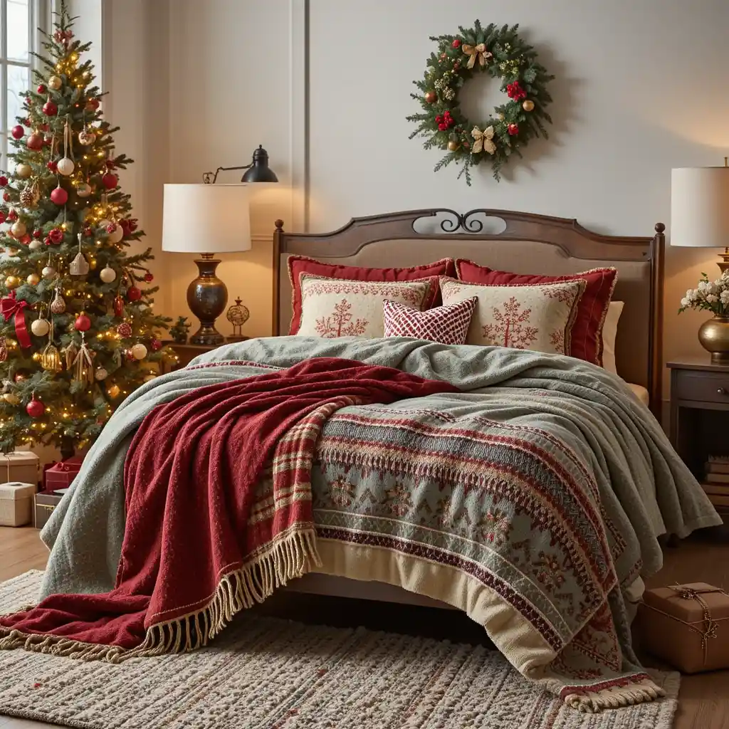 Layering soft, Christmas-colored blankets on beds, sofas, or chairs brings both comfort and festive vibes. Perfect for chilly winter evenings.