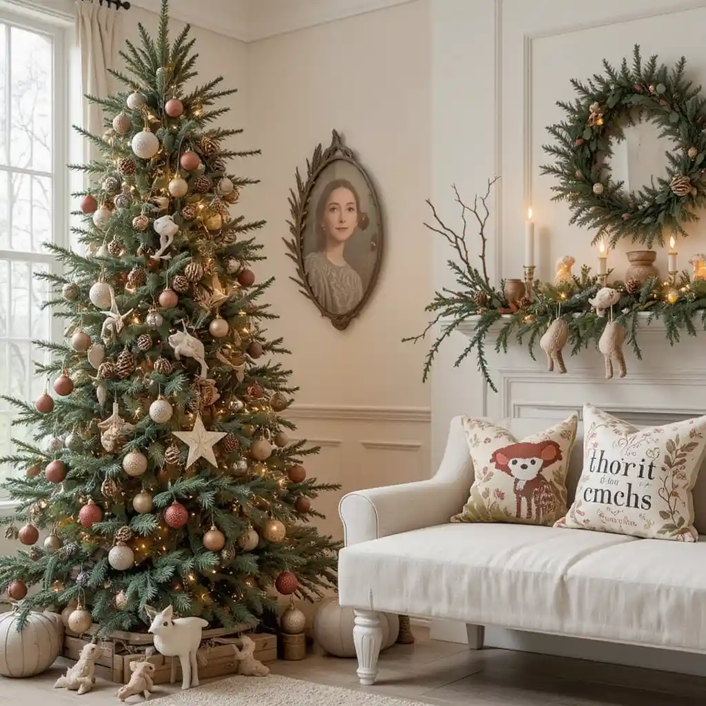 Decorate with pinecones, woodland animals, and earthy greens. The nature-inspired style makes your home feel rustic and inviting.