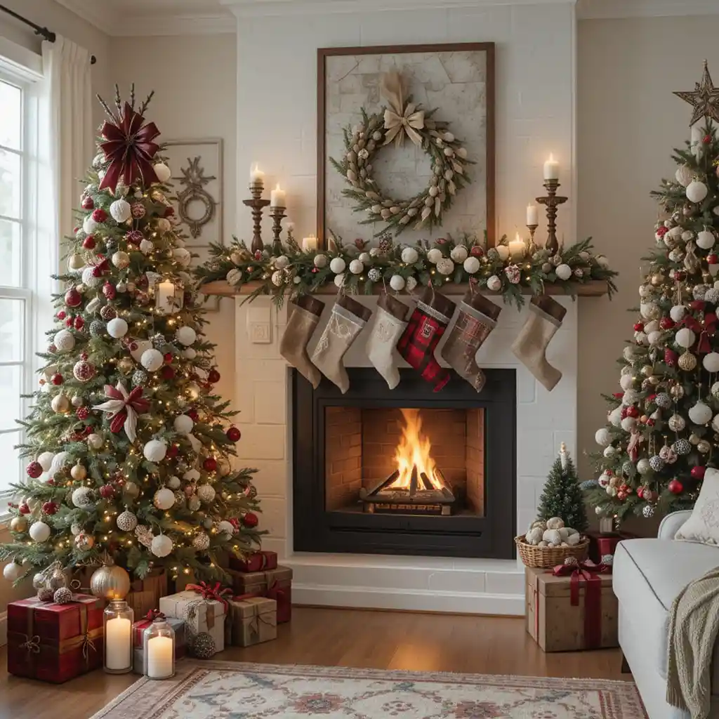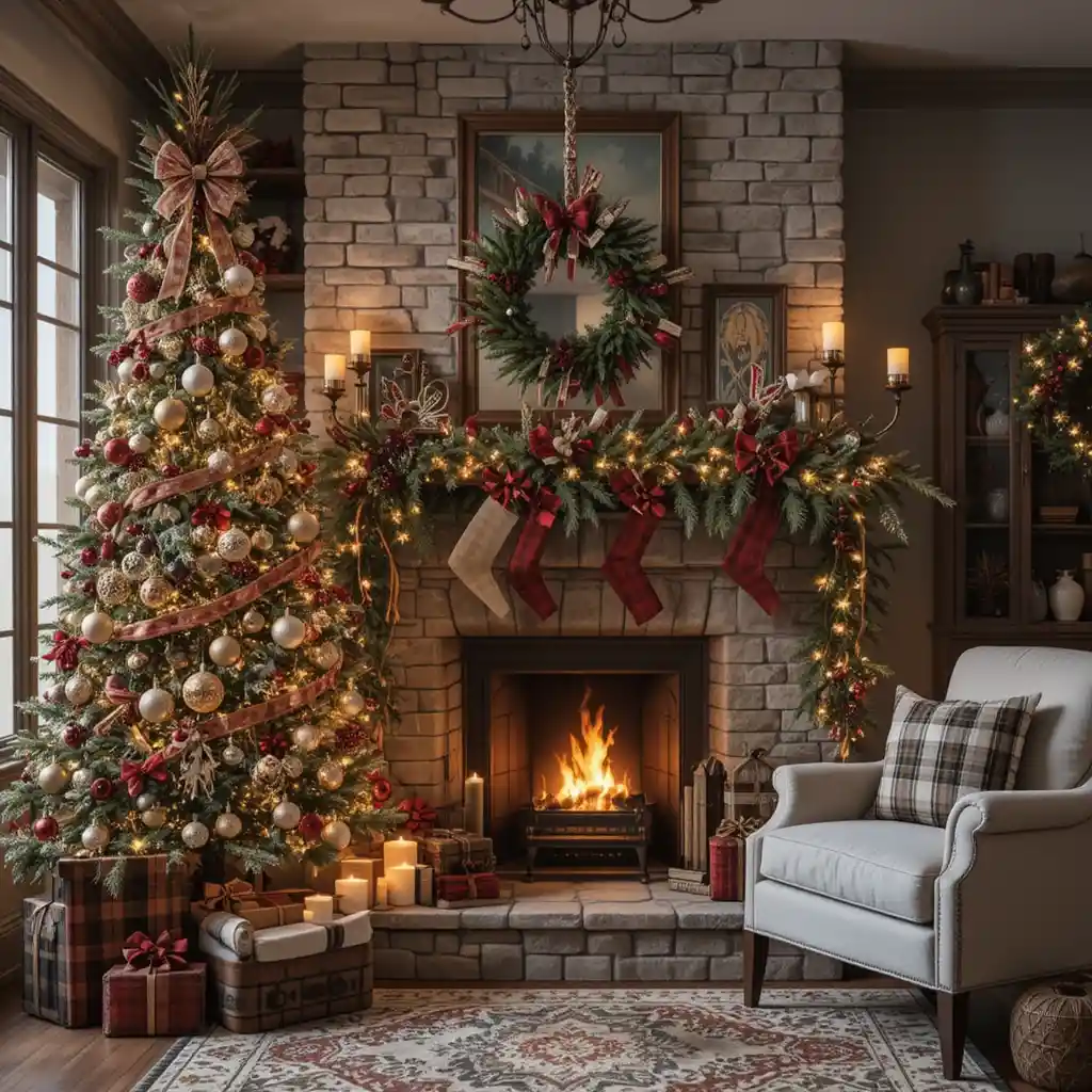 Bring in plaid ribbons, flannel accents, and rustic textures. This theme adds warmth and a cabin-like charm to your Christmas décor.