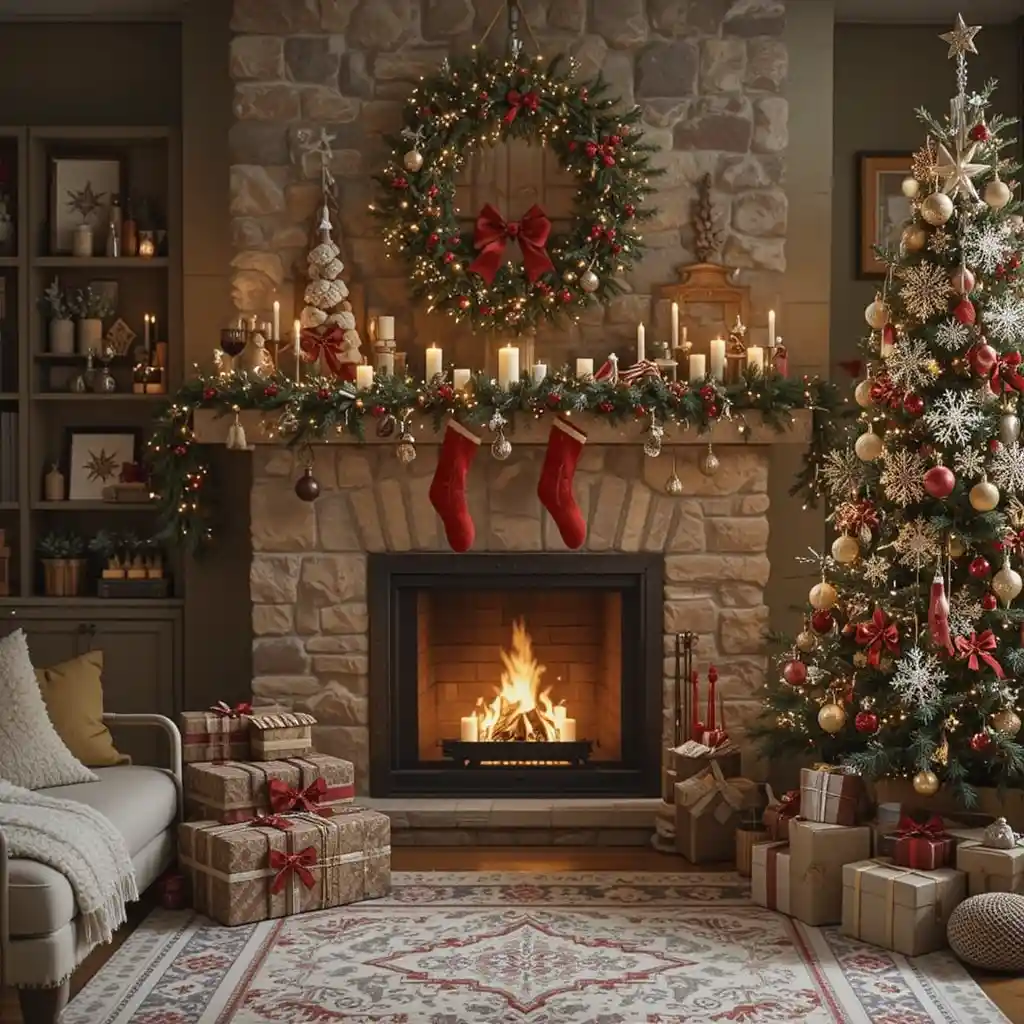 Focus on gold ornaments, candles, and shimmering garlands. This theme brings elegance, warmth, and a festive golden sparkle. Christmas Themes Decoration