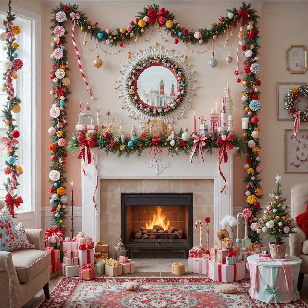 Decorate with candy cane stripes, lollipop ornaments, and colorful garlands. This playful look is perfect for families with kids.