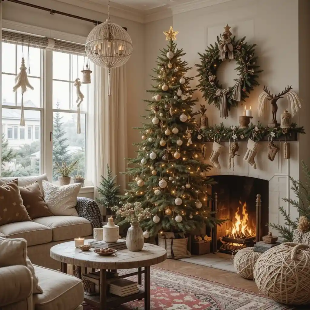 Incorporate macramé hangings, earthy tones, and handmade ornaments. The boho style creates a relaxed, free-spirited holiday mood.