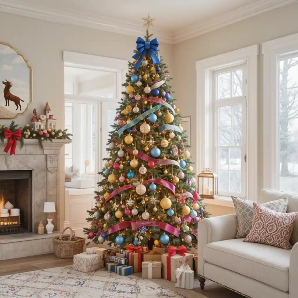 Use candy cane ornaments, gumdrop garlands, and peppermint swirls. This cheerful theme is playful, colorful, and perfect for families with kids.