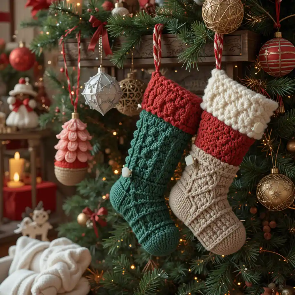 Handcrafted items add charm and nostalgia. Crochet ornaments, knitted stockings, and handmade blankets create a cozy, personalized holiday setting.
