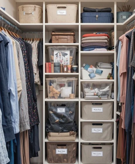 Labels help everyone in the household keep things organized. When each bin or basket has a purpose, it’s easier to put items back where they belong Closet Organization Ideas.