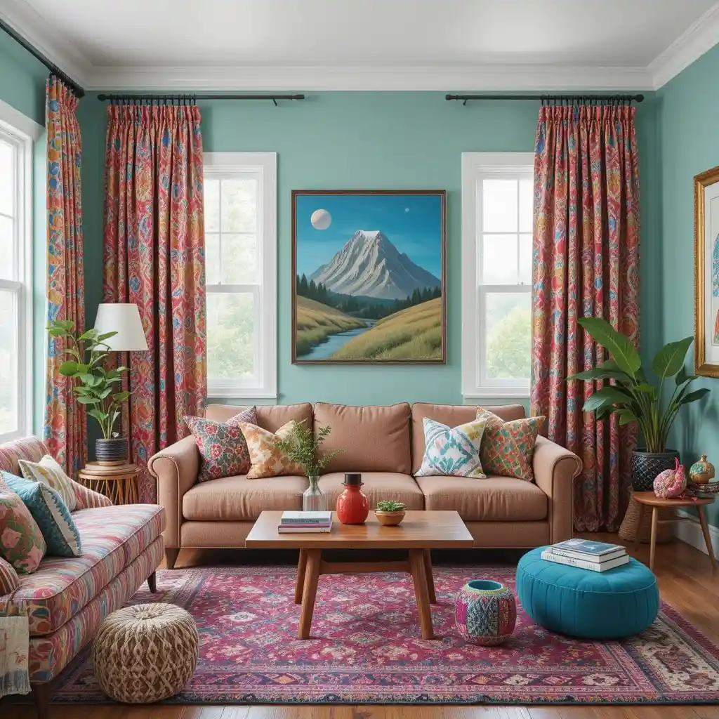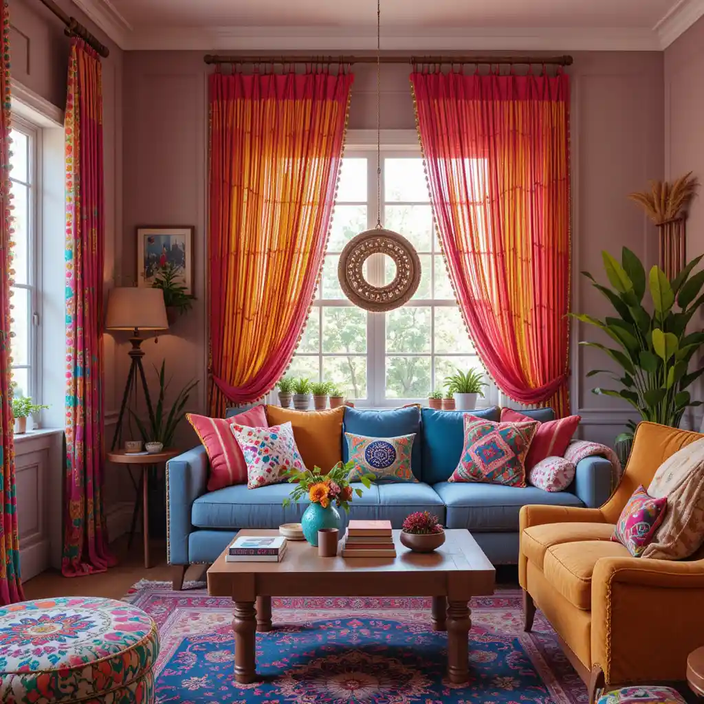 Opt for curtains in Moroccan tile prints, paisleys, or medallion motifs to create colorful movement and a cozy layered effect.