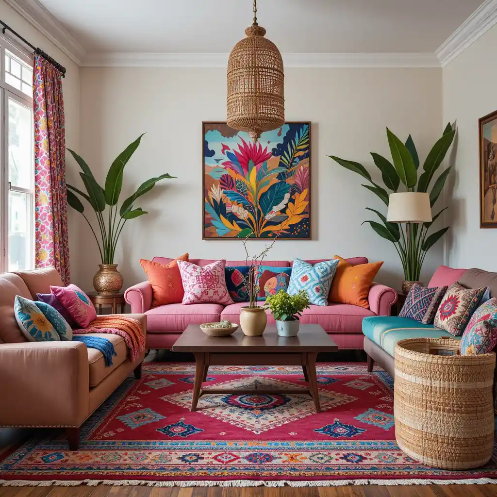 Boho (Bohemian) design is all about free-spirited energy, global inspiration, and colorful expression. If you’re dreaming of a living room filled with vibrant hues, bold patterns, and layered textures, a colorful boho living room is the perfect choice. This relaxed yet eclectic style lets you mix and match without rules—creating a space that’s both artistic and inviting.