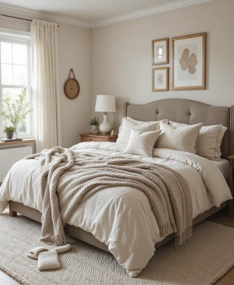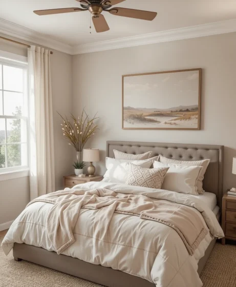 Shades like beige, taupe, sand, or warm gray make your bedroom feel peaceful and grounded. Neutral tones also pair beautifully with natural textures like wood, linen, and cotton.