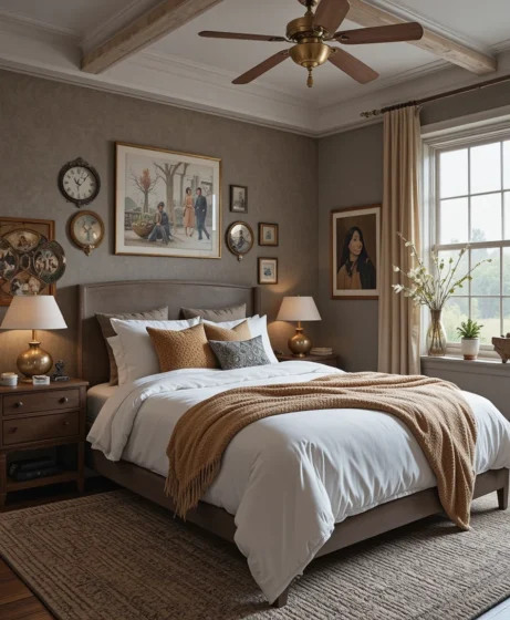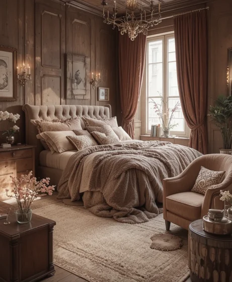 Warm metallic accents like brushed gold lamps, bronze frames, or copper décor add richness and warmth. These tones make the room feel more inviting and sophisticated Cozy Bedroom Ideas.